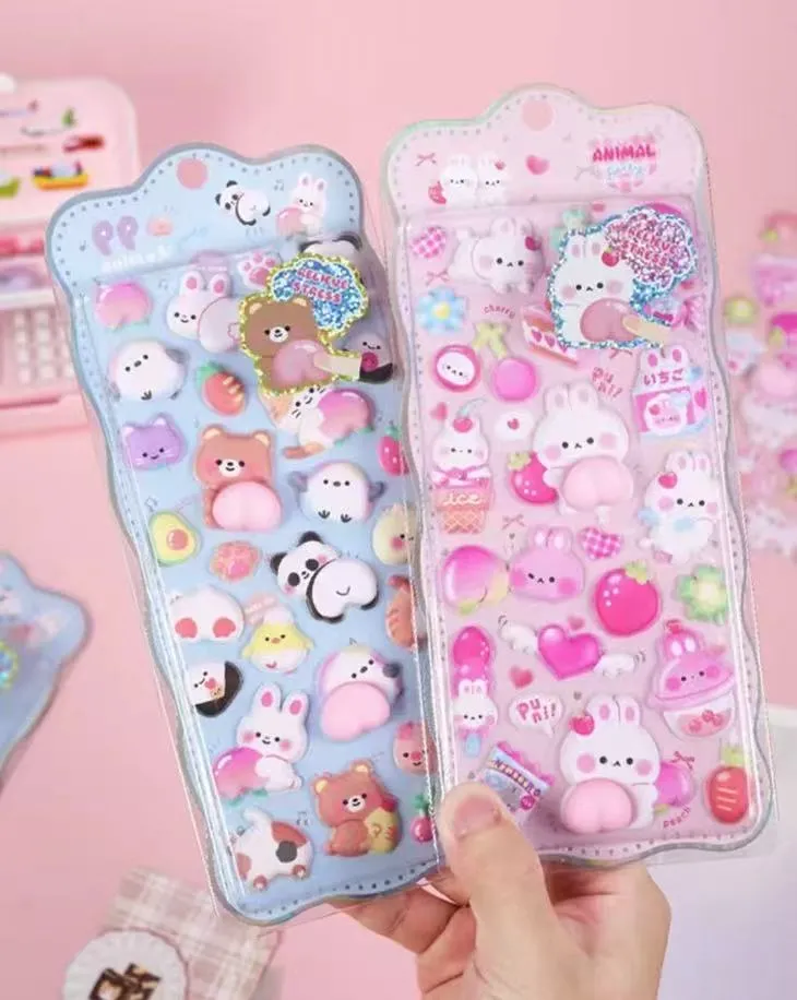 3D dizajn: Za razliko od ravnih nalepk imajo te dvignjeno, napihnjeno teksturo, ki na površinah ustvari igriv, dimenzionalni videz.