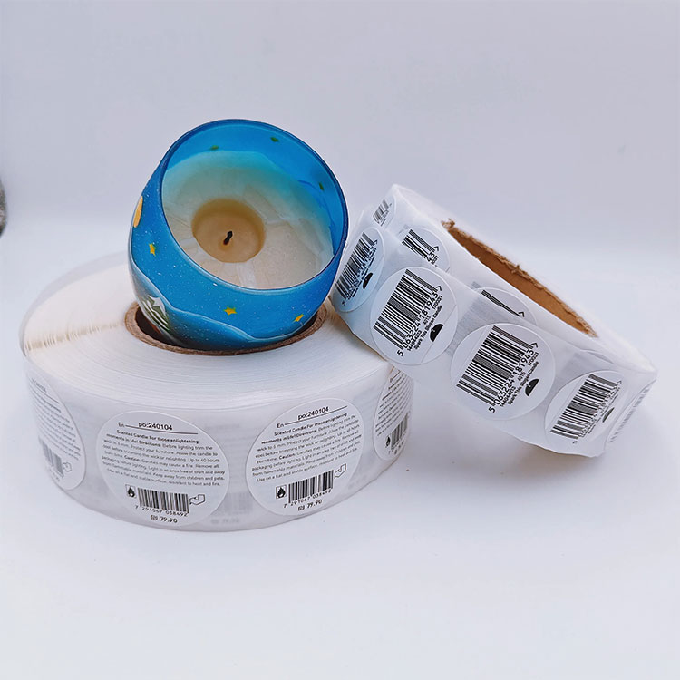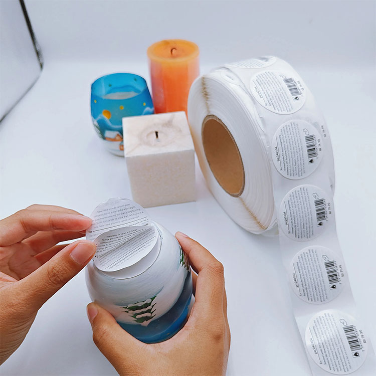 Material, odporen na vodo in olje:Glede na to, da lahko dišeče sveče med uporabo pridejo v stik z vodo ali oljem, lahko z izbiro nepremočljivega in oljeodpornega materiala nalepke zagotovite obstojnost nalepke in obstojnost informacij.