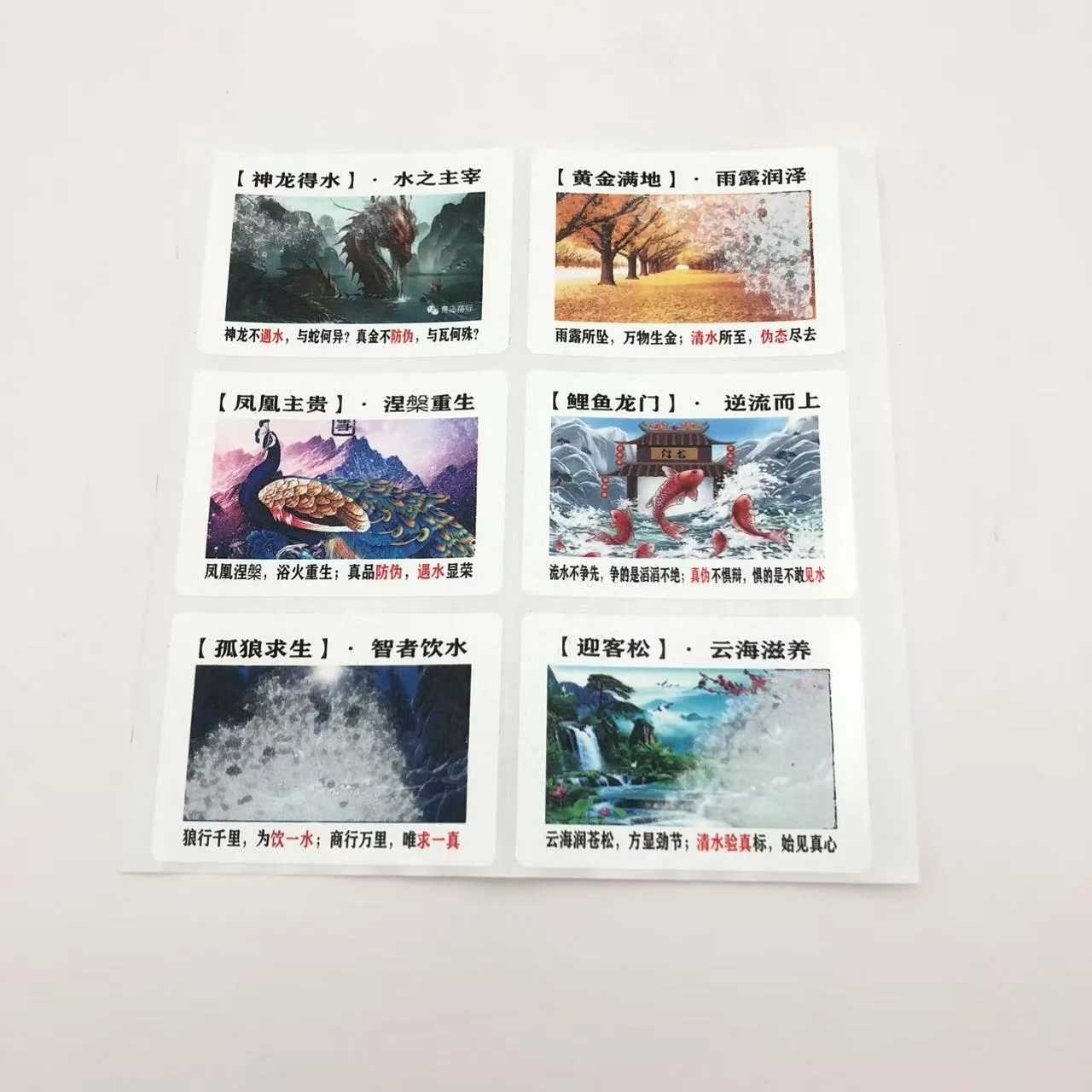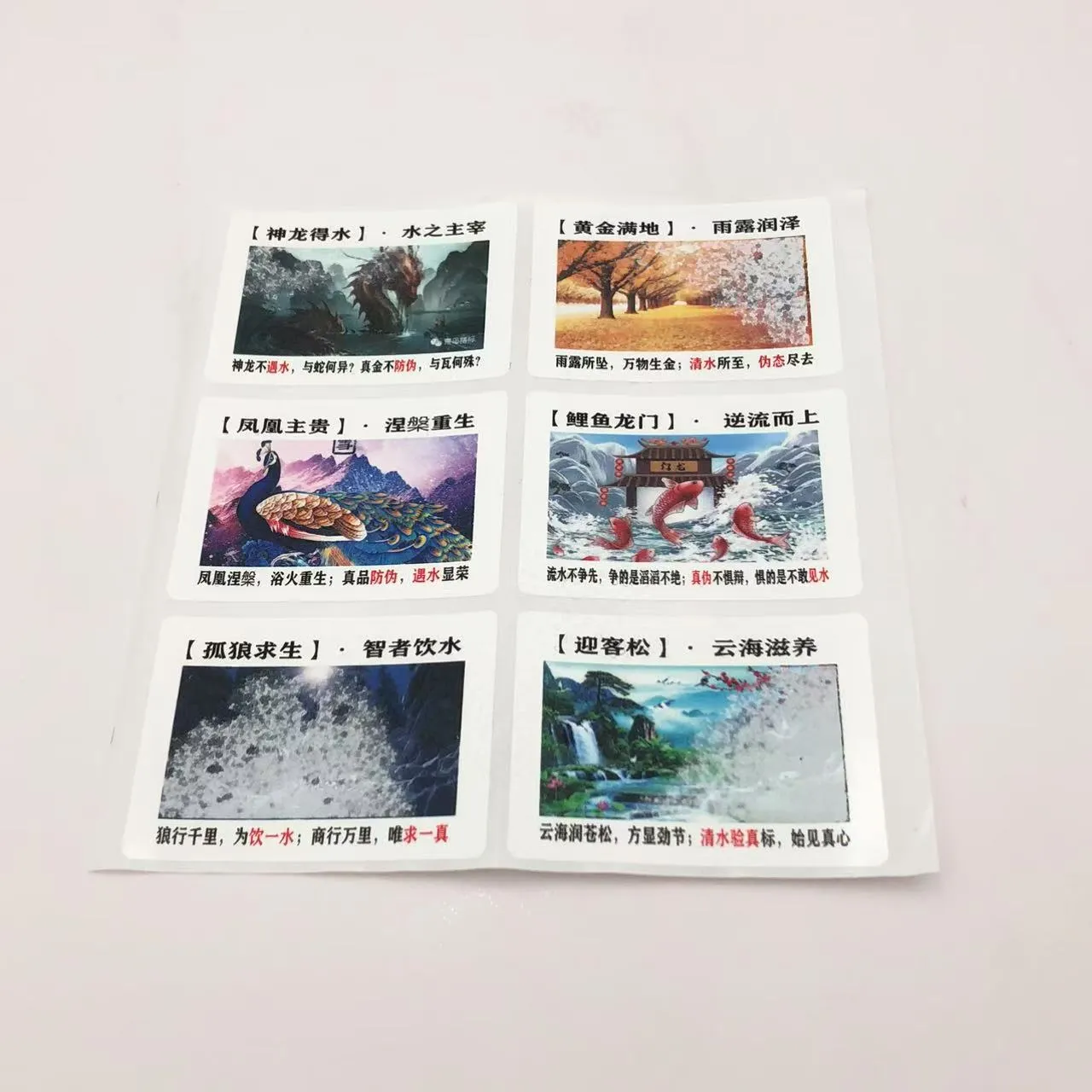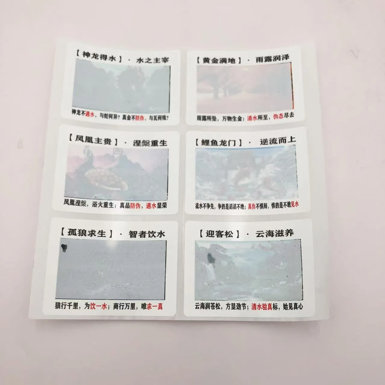 Vodoobčutljive nalepke, ki spreminjajo barvo, uporabljajo fizikalne ali kemične reakcije med črnilom in vodo, da naredijo skrite vzorce vidne ali sprožijo barvne spremembe. Te nalepke, proizvedene s posebnimi postopki in opremo, nudijo odlične lastnosti proti ponarejanju. Po sušenju se lahko nekatere vrste vrnejo v prvotno stanje, kar omogoča večkratno uporabo.
