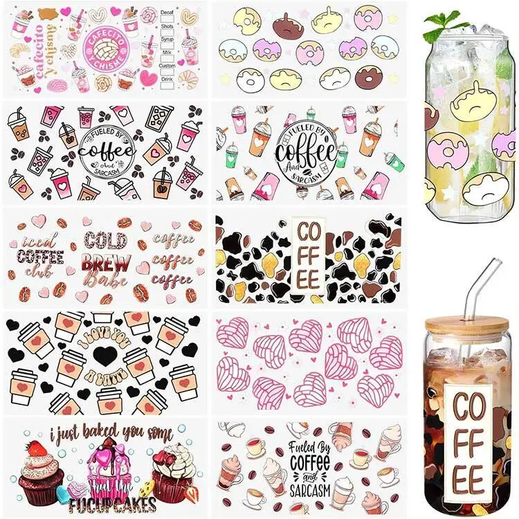 Nalepke za ovoje skodelic so izdelane iz profesionalnega vodoodpornega UV DTF substrata, te nalepke se ponašajo z izjemno vodoodpornostjo. Med vsakodnevno uporabo vam ni treba skrbeti za madeže vode ali razlite pijače, podpirajo pranje z vodo za enostavno čiščenje. Tudi pri čiščenju namizne posode se nalepke ne bodo zlahka odlepile ali zbledele, tako da bodo na dolge razdalje ohranile svetel in živ videz.