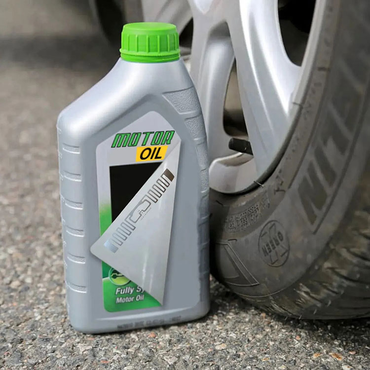 Nalepka običajno vsebuje blagovno znamko motornega olja, vrsto (kot je 10W-30, 5W-40 itd.), stopnjo viskoznosti in druge pomembne informacije, ki uporabnikom omogočajo hitro prepoznavanje in izbiro pravega izdelka.