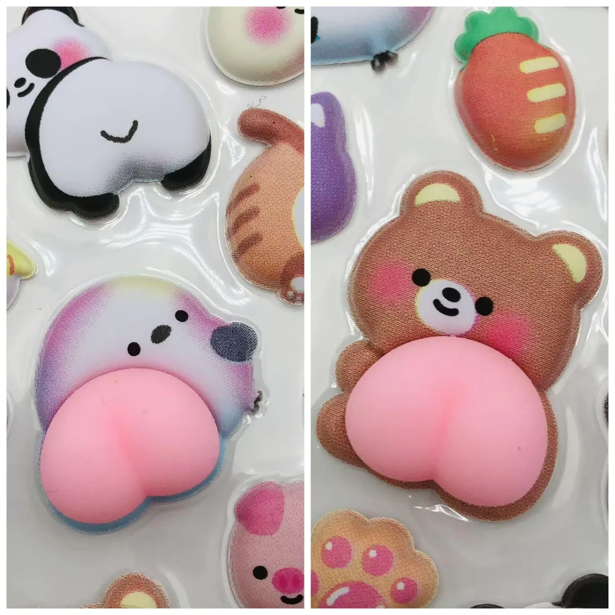 V nasprotju s tradicionalnimi igračami proti stresu so te nalepke za lajšanje stresa v obliki zadnjice opremljene z lepilom, ki ne pušča ostankov na zadnji strani, kar omogoča, da jih prilepite in ponovno uporabite kot običajne nalepke. Lahko jih pritrdite na telefone, računalnike, prenosnike, plastenke z vodo, mize ali katero koli površino, ki jo želite okrasiti, in služijo tako kot igrača za lajšanje stresa kot kot edinstven izraz osebnosti.