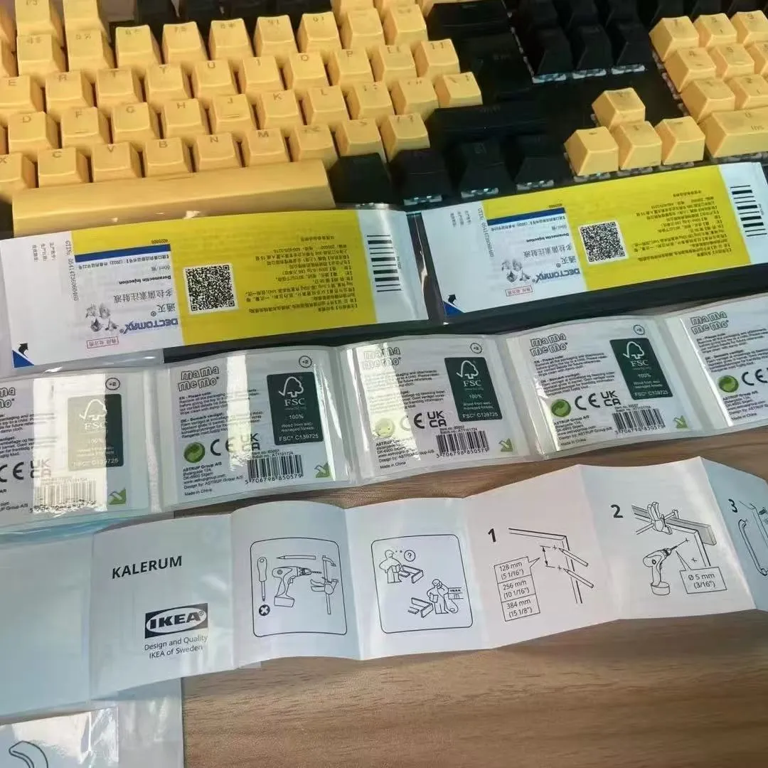 Večslojne etiketeso kot "sendvič", sestavljeni iz 2-3 plasti nalepk, ki so med seboj povezane s posebnim lepilom. Vsak sloj je običajno neodvisen in ga je enostavno odlepiti. Prva plastvečplastna etiketase postavi na površino. Ko ga uporabnik dvigne, lahko vidi vsebino naslednje strani. Spodnja plast ima samolepilno površino, ki jo lahko nalepimo na izdelek. Vsaka plast ima posebno lepilo.
