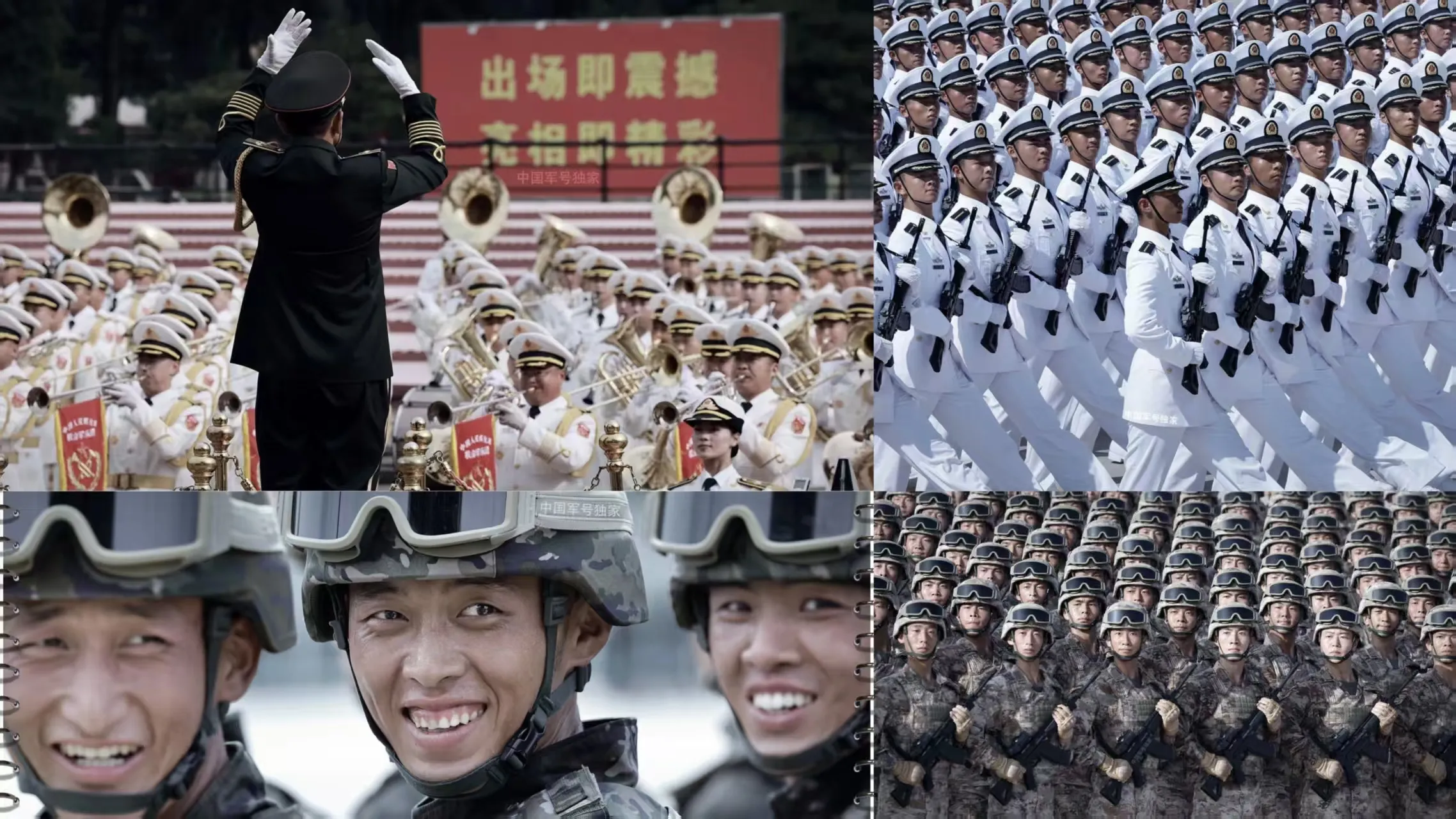 Na trgu Tiananmen je bilo v zaporedju minilo 45 formacij in ešalonov, skupna vojaška zasedba pa je bila sestavljena iz več kot tisoč častnikov in vojakov, ki so igrali močne zvoke dobe.