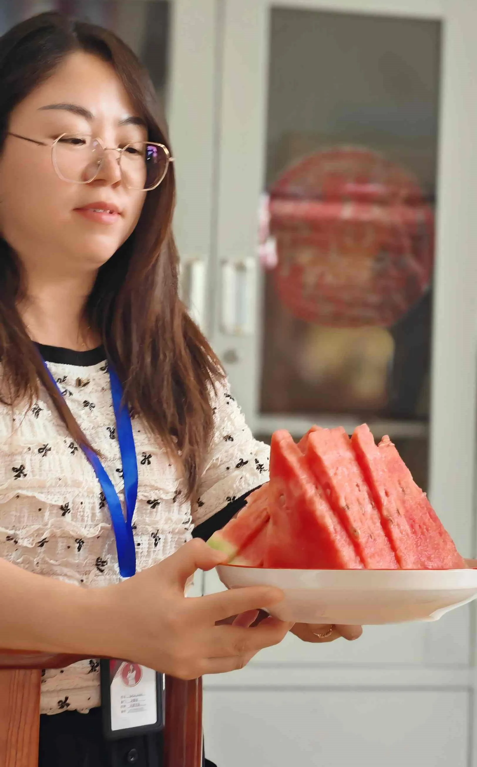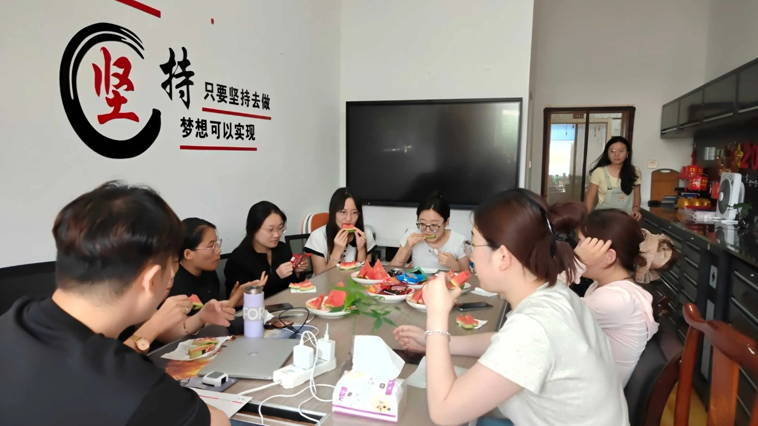 Na mestu dogodkov so bili lepo prikazani različni prigrizki, od hrustljavih oreščkov, sladkega suhega sadja do različnih izvrstnih peciv. Bogati in raznoliki prigrizki so se srečevali z različnimi okusnimi preferencami vseh. In najbolj privlačen izdelek je bil sveže odvzet velika lubenica iz hladilnika. Zelena koža lubenice je bila ovita okoli svetlo rdečega mesa, in ko se je odprla, se je sok razlil in proti njima je zasukala sladka aroma. V vročem poletju je postal najbolj priljubljeno "hladilno orodje". Zaposleni so sedeli v skupinah, držali lubenico v rokah in okusili prigrizke, sproščeni klepet glasovi in veseli smeh pa so nenehno naraščali in padali. Celotno pisarno je bilo napolnjeno z vzdušjem veselja.