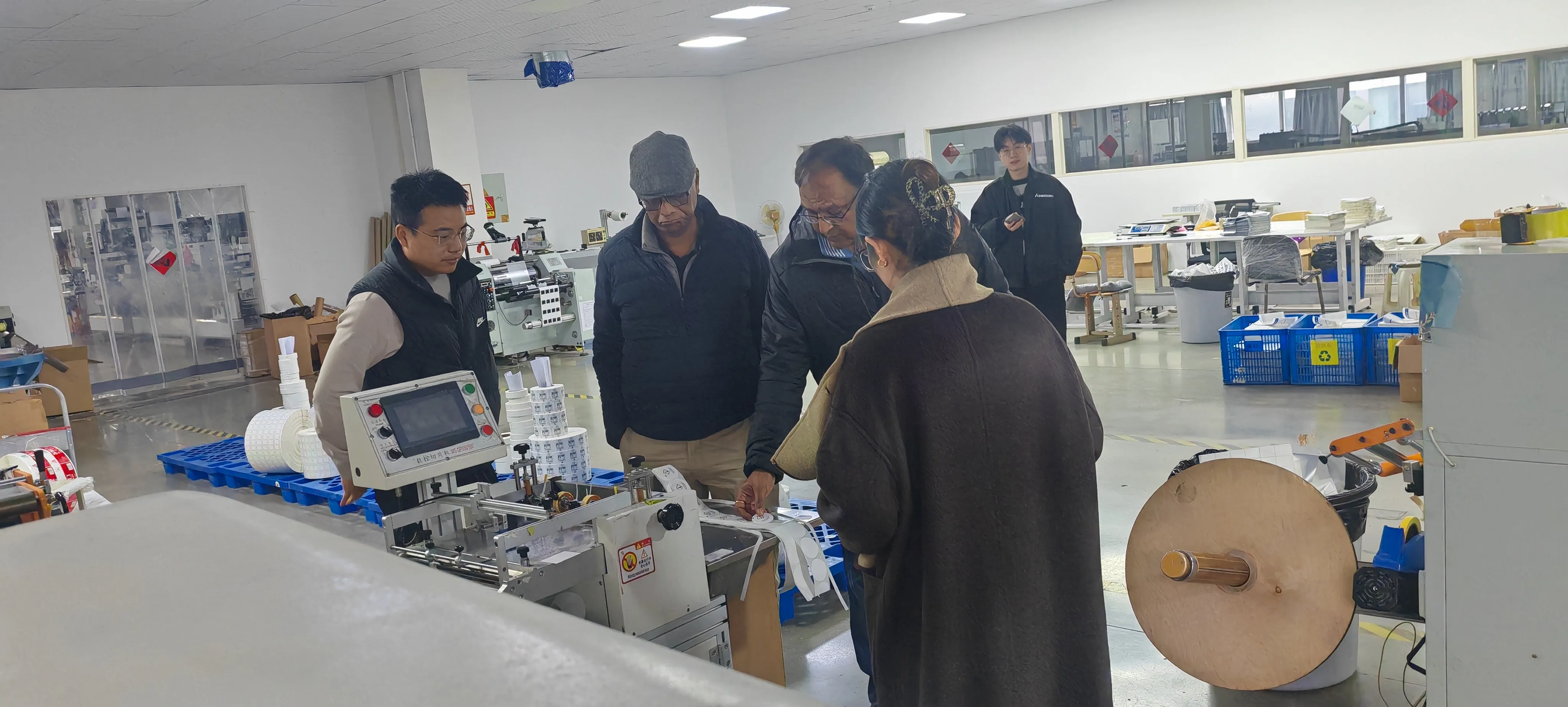 Med obiskom, ki so ga ves čas spremljali vodilni v podjetju in ustrezni vodje oddelkov, se je indijska skupina strank zaporedno poglobila v osrednja področja našega podjetja, kot so proizvodna delavnica, center za nadzor kakovosti in skladišče surovin, da bi opazovala celoten proces pakiranja nalepk od izbire surovin, natančnega tiskanja, rezanja do pregleda končnega izdelka.