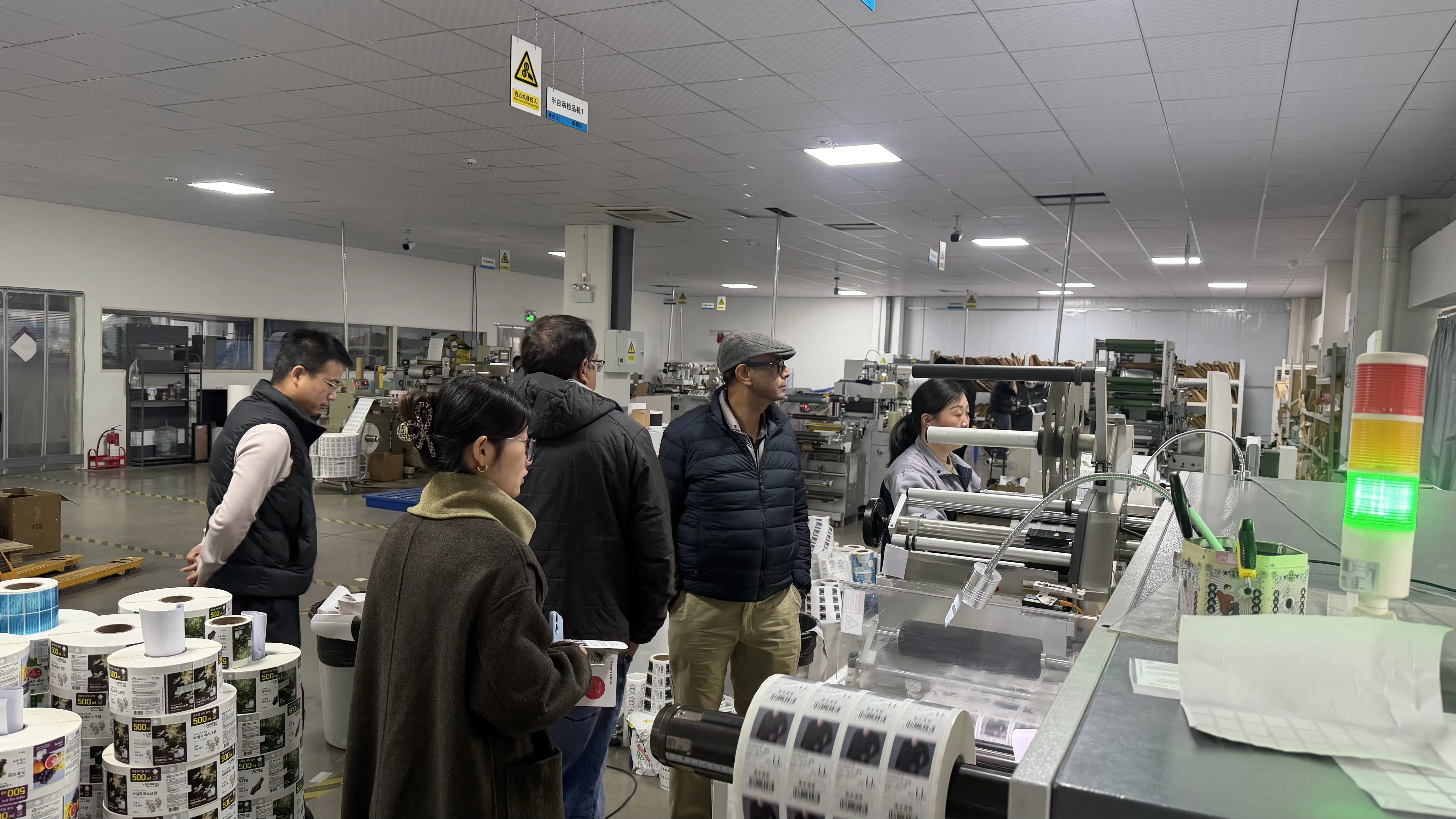 V proizvodni delavnici so stranke od blizu opazovale učinkovito delovanje proizvodne linije za avtomatsko tiskanje, zelo pohvalile okolju prijazno črnilo, visoko natančno tehnologijo izrezovanja in izpopolnjen nadzor proizvodnje, ki ga je sprejelo naše podjetje, in verjeli, da ima naše podjetje standardizirane proizvodne procese in močno tehnično moč, ki lahko v celoti izpolni njihove zahteve glede visoke kakovosti za embalažne etikete.