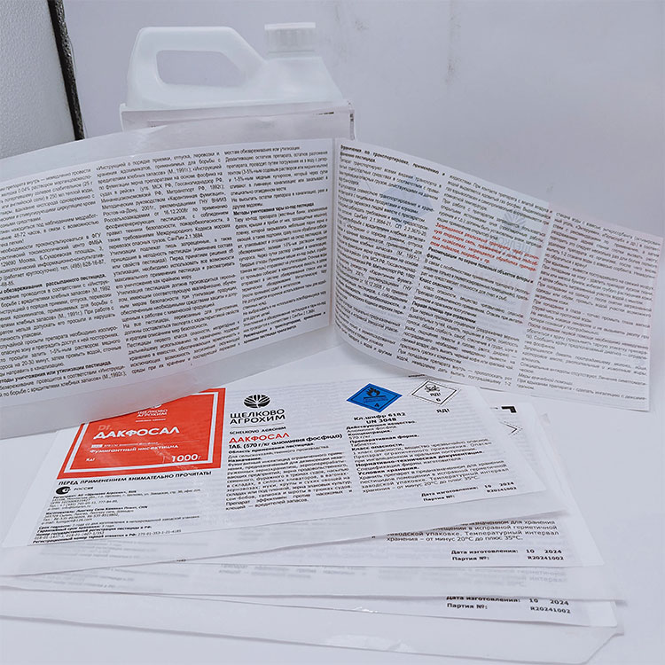 Večplastne etikete za pesticideskladen z ustreznimi regulativnimi zahtevami, vključno z uporabo posebnega jezika, simbolov in formatov informacij, da uporabnikom zagotovi, da razumejo, kako varno uporabljati izdelek.